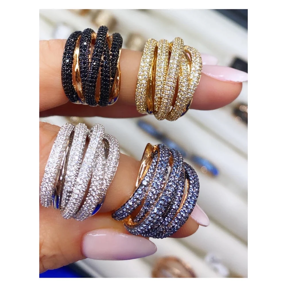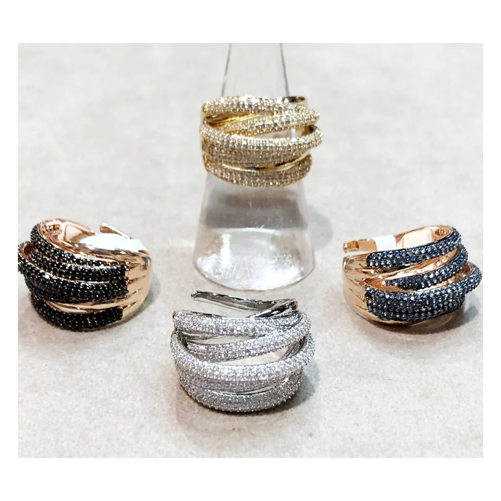 Anelli, Bigcartel, Bigiotteria, Concept storeAnello zirconi in metallo rodiato placcato argento o oro regolabile