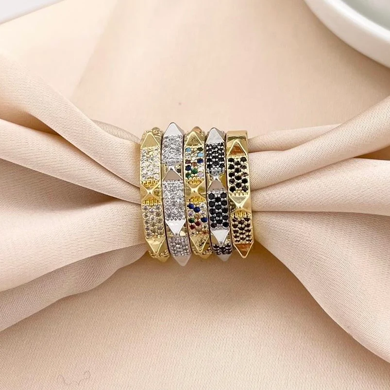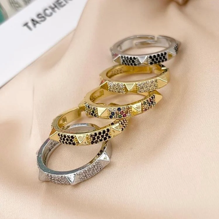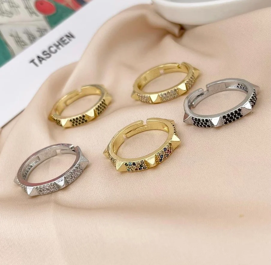 Anello in ottone rodiato e cubic zirconia.