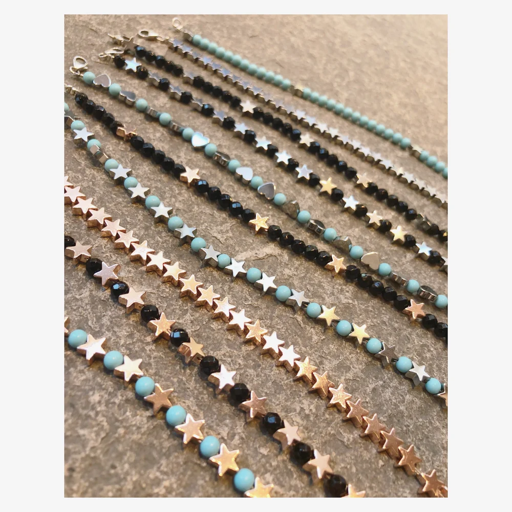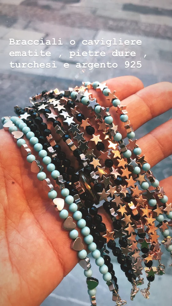 Cavigliera in ematite , argento925 , turchesi o pietre dure , fatta a mano in Italia.