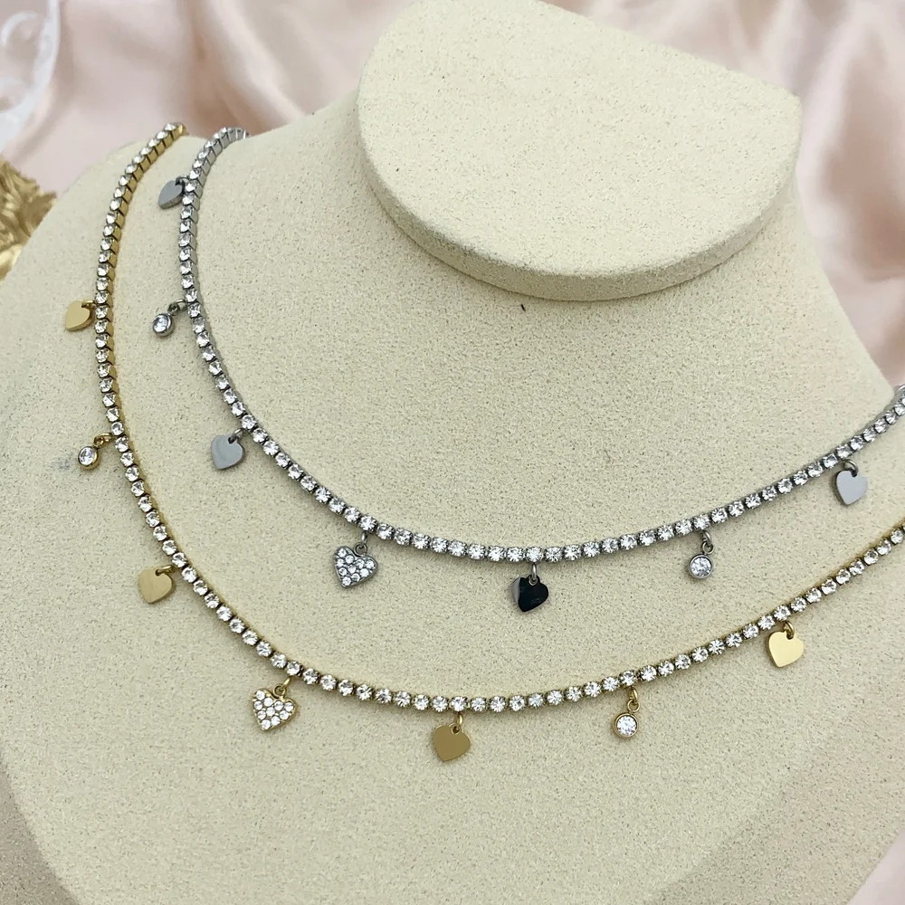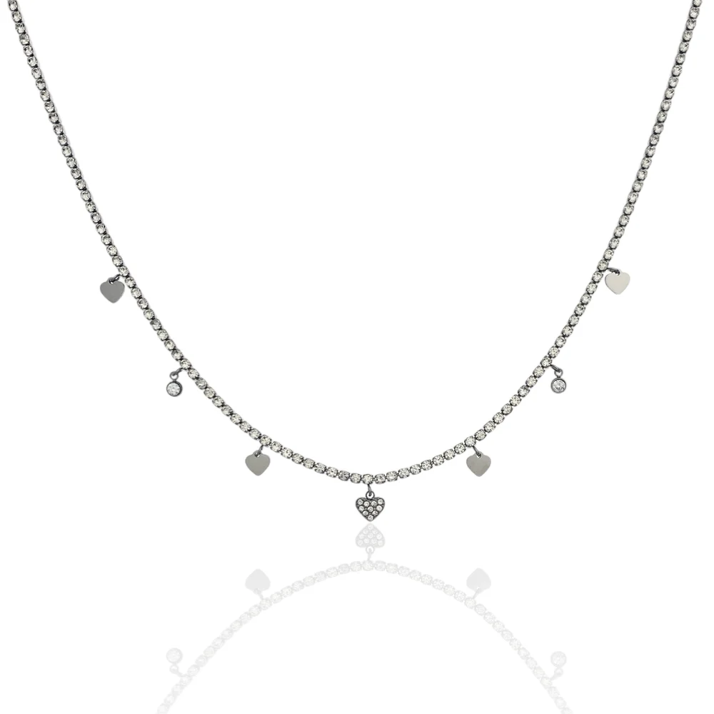 Collana tennis di zirconi in acciaio inossidabile con charms cuori o stelle