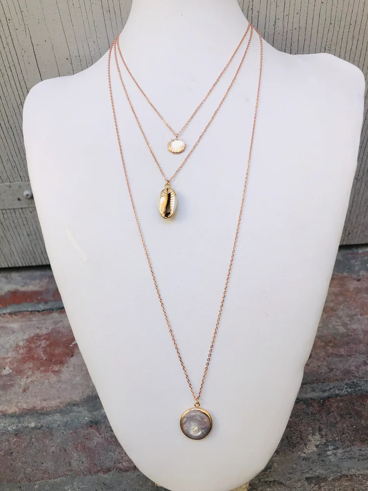 Collana intermedia con conchiglia naturale placcata nei bordi