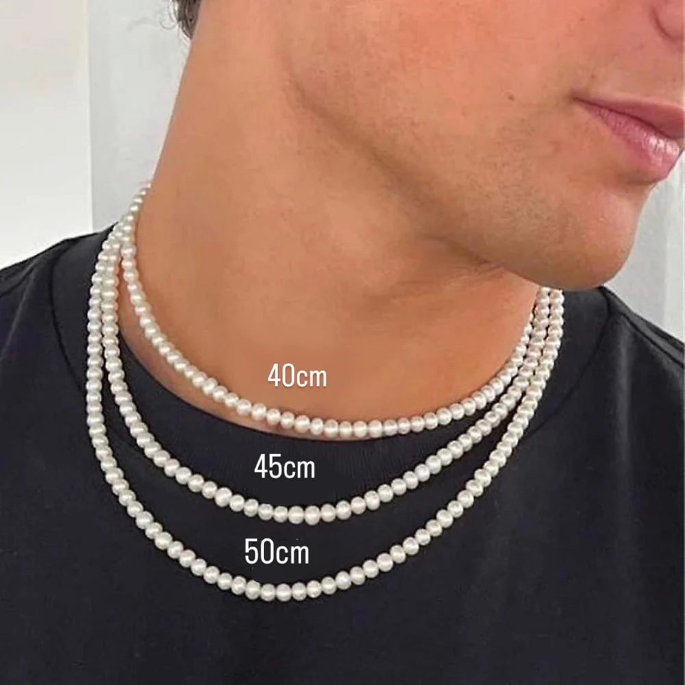 Collana di perle sintetiche con chiusura in acciaio inossidabile per uomo o donna