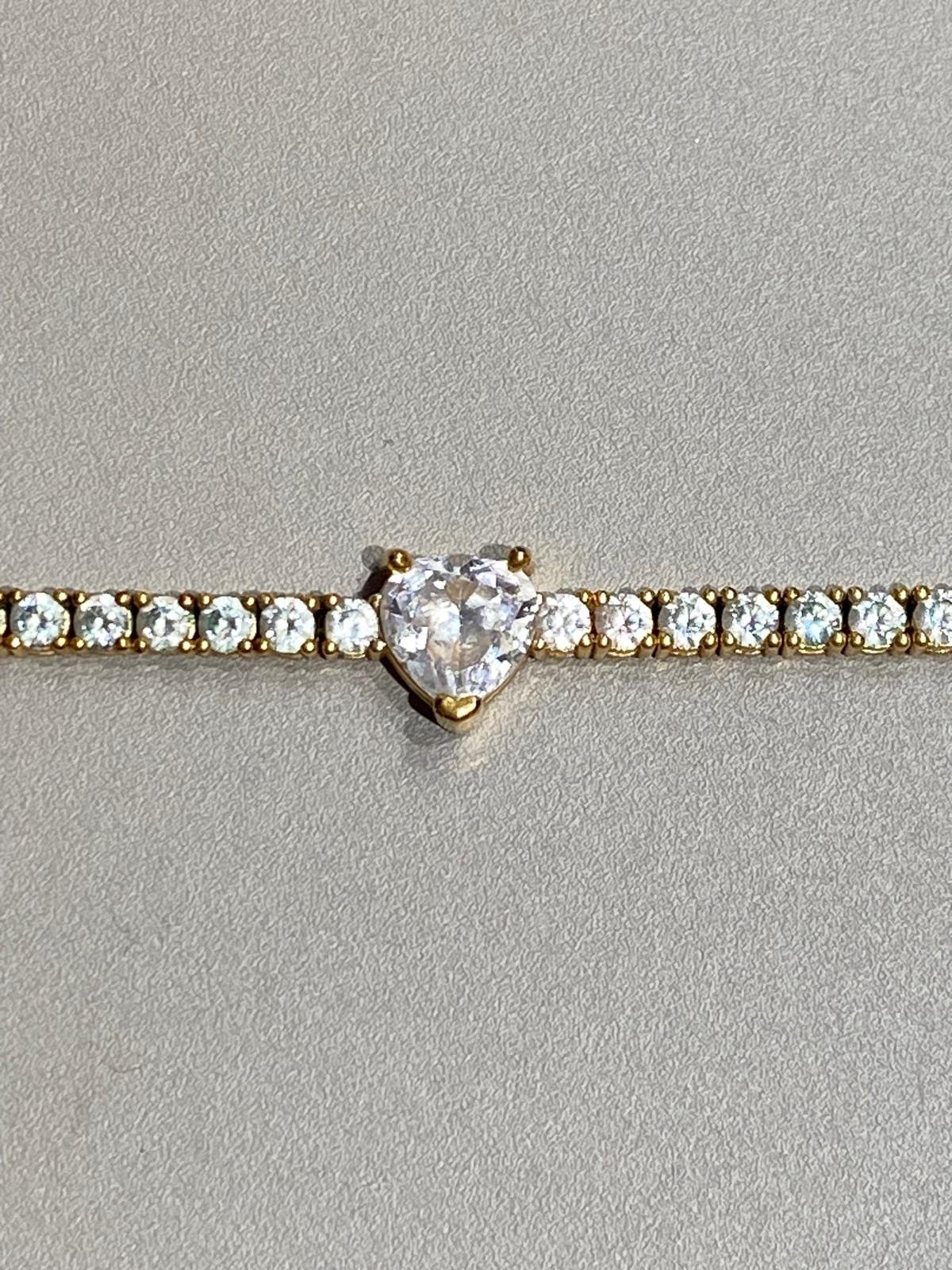 Il girocollo è in acciaio 316L placcato oro 18k con zirconi bianchi di cui quello centrale a forma di cuore.