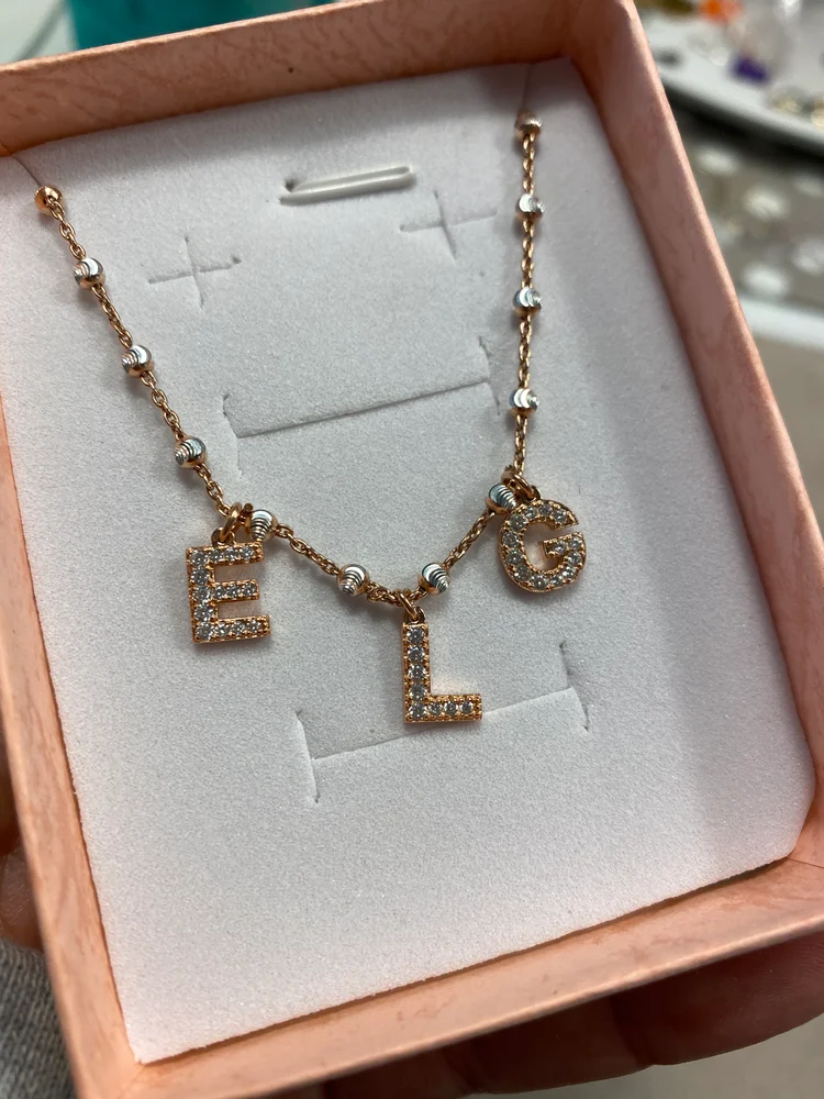 Collana In argento925 Placcata oro rosa con palline sfaccettate Argento misura 40cm personalizzabile da una a tre iniziali
