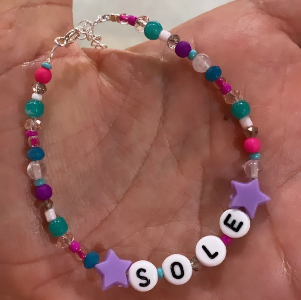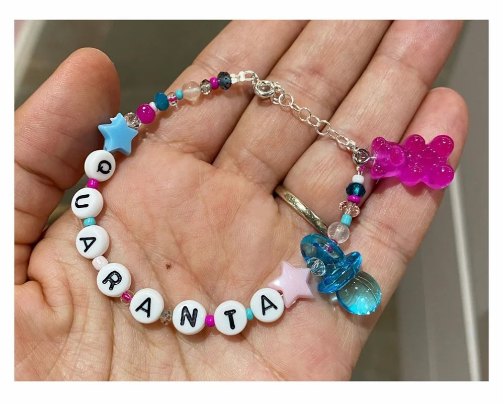 Braccialetto in argento925 con elementi di cristalli , pietre dure , coralli e plastica.